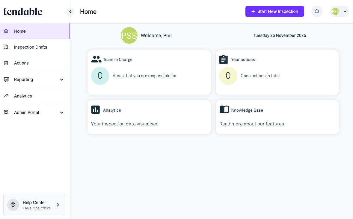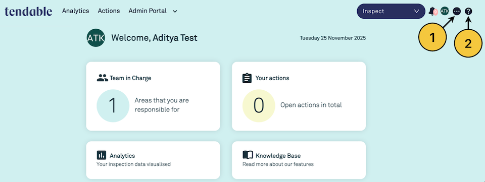 Admin Portal: For our Tendable Leads, you'll see that Inspection Management and User Management now live within the collapsable element. Where previously this would open in a new tab, we have now unified the experience so you can operate within one active space.